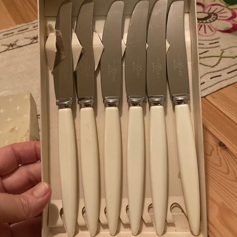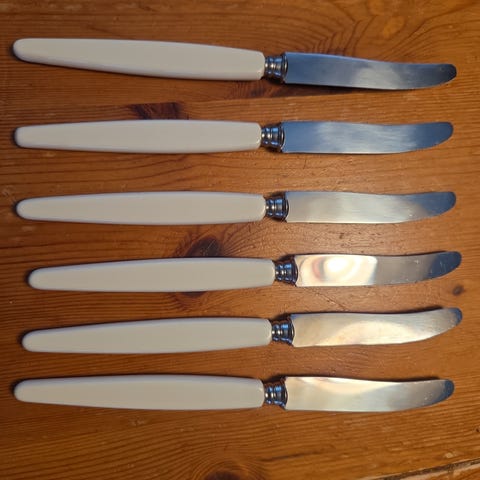 Skaugum kniv, kniv, hvit kniv, Skaugum bestikk, Art 2000, Skaugum Art 2000, dessertkniv, dessertkniver, bordkniv, bestikk kniv, kjøkkenkniv, kjøttkniv, biffkniv, spisebestikk, bestikkserie, hvitt håndtak, rustfritt stål kniv, elegant bestikk, design bestikk, moderne bestikk, norsk design bestikk, kniv til middag, kniv til dessert, kniv til servering, bestikk til hverdags, bestikk til fest, kvalitetsbestikk, kniv til borddekking, Tilbords bestikk