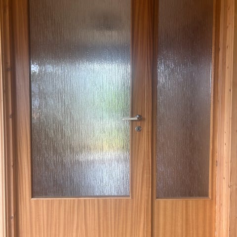 Teak dør med glassfelt