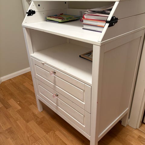 Du når enkelt bleier og klær siden plata over den øverste skuffen kan trekkes ut.