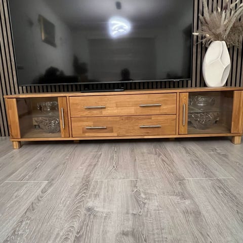 Meget pen tv-benk med god plass. 2 skap og 2 skuffer