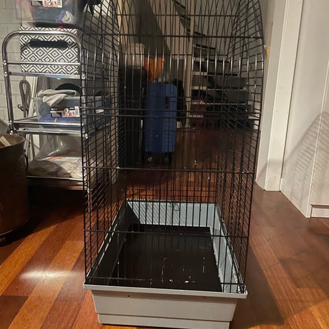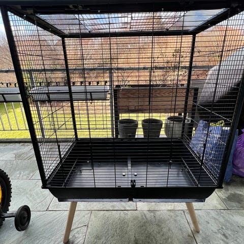 Stort fuglebur i svart metall - nesten ny