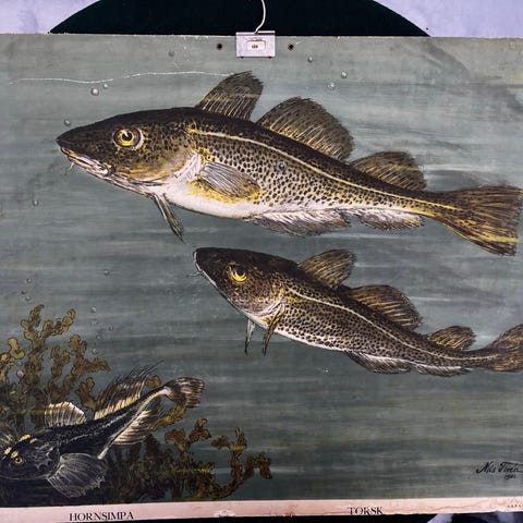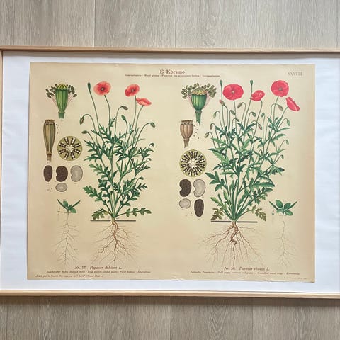 Selger en sjelden og svært vakker original skoleplansje fra 1932, illustrert av Nils Tirén, Sveriges mest anerkjente natur- og dyreillustratør.