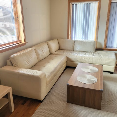 Selger en godt brukt Italiensk hjørnesofa i skinn.