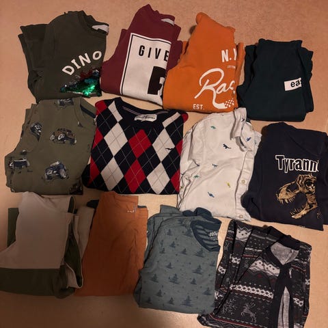 4 gensere og 5 bukser.