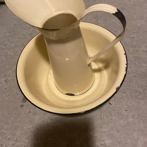 - Fat/brett (knekt av del i ene hjørnet, delen medfølger slik at den kan limes på om ønskelig).