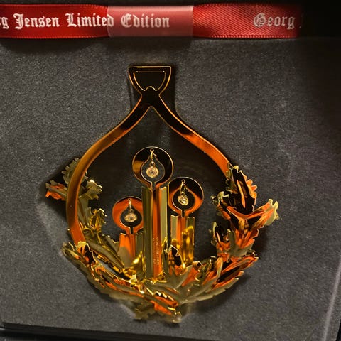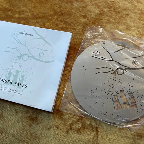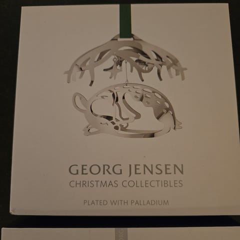 Georg Jensen Christmas Mobile 2022 dekorasjon i palladiumbelagt materiale. Designet av Sanne Lund Traberg. Passer til juledekorasjon i juli og desember.
