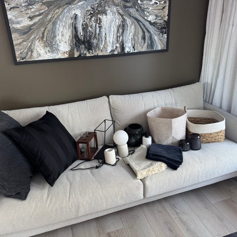 Selger div til huset, potter, lykt, tre fat, kurver, vase, eggeglass ect