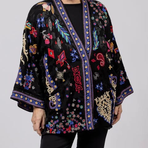 Johnny Was nydelig fløyels Kimono jakke broderier sort pent brukt
