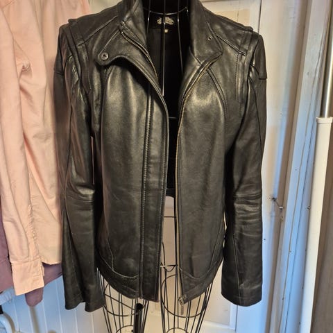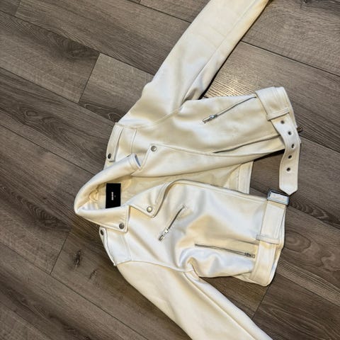 Knapt brukt «skinnjakke» fra Bik bok.