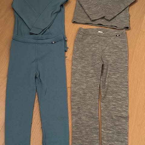 - 1 blått sett med merinoullundertøy; overdel og underdel