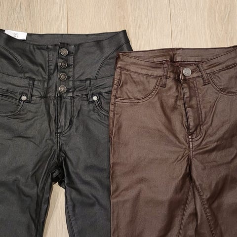 Selger 4 fine bukser til dame, 100 kr per stk. den lyse grønne denim buksen er str 38, men er stretchy☺️Hele og fine.