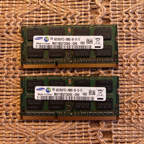Samsung PC2-5300U DDR2 RAM-moduler, totalt 2 x 1GB. Passer for datamaskiner som støtter DDR2-minne. Standard 240-pinners DIMM-moduler.