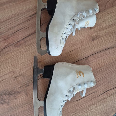 Graf Victoria skøyter i hvit. Skøytene har tradisjonell design med metallblad og snøring for god passform. Str 36. Lite brukt.