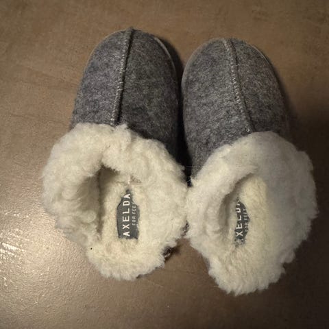 Hello Kitty tøfler. Størrelse 36-37, men lille i størrelsen. Tøflene er beige med myk, pelslignende kant rundt åpningen for ekstra komfort. Selger siden de blev for små i størrelsen.