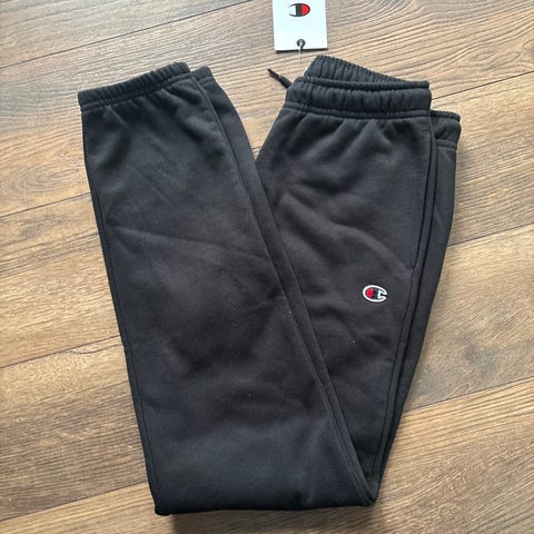 Champion joggebukse i størrelse 164 for unisex barn. Laget av bomullsmateriale i grå farge. Buksen har ribbestrikkede mansjetter ved anklene og en snor i livet for justering.