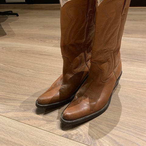 Tøffe cowboyboots i brunt skinn.