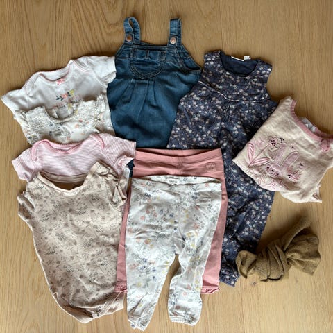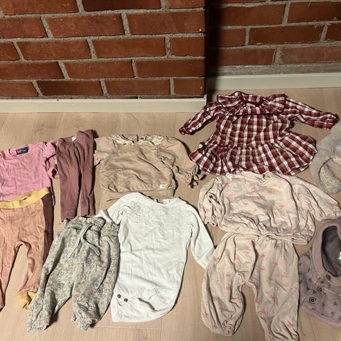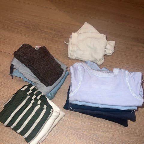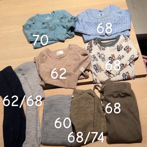 Godt brukt klespakke med ull i ca str 62. noe nupper, ser ellers greit ut. Hust and claire, joha, voksi osv