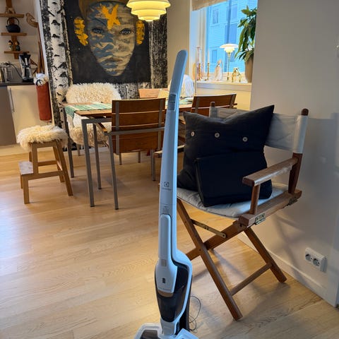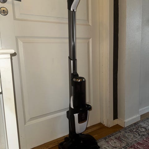 Støvsugeren er godt brukt og ble kjøpt i 2021. Det kommer en pipete lyd fra slangen, som sikkert kan fikses. Den har noen bruksmerker, men den fungerer akkurat som den skal.