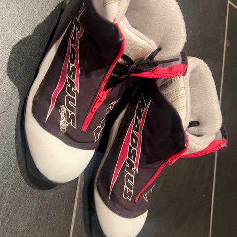 Frost Girl skisko i størrelse 36. Skiskoene har en kombinasjon av lilla, svart og hvit farge. Egnet for barn/jenter. Passer til rottefella ski binding. Sender ikke.