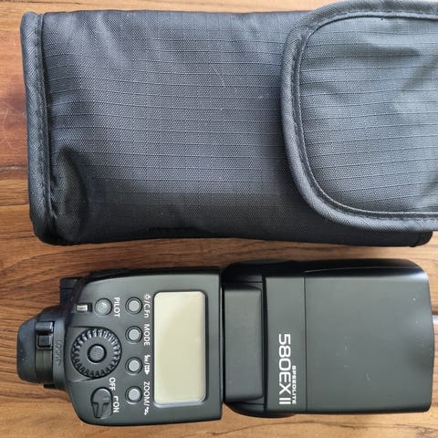 Jeg har gått over til Nikon og selger derfor denne blitzen videre. Jeg kan telle på fingrene de gangene jeg har brukt den ettersom jeg stort sett sverger til naturlig lys. Følger med oppbevaringsveske.