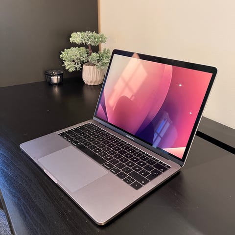 Apple MacBook Pro 13-tommer 2016 bærbar datamaskin med Retina-skjerm (2560 x 1600). Farge: Sølv. Operativsystem: macOS Monterey versjon 12.7.6. Prosessor: 2,0 GHz Intel Core i5. Grafikk: Intel Iris Graphics 540 med 1536 MB. Lagringskapasitet: 500 GB SSD. 4 thunderbolt porter.