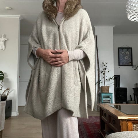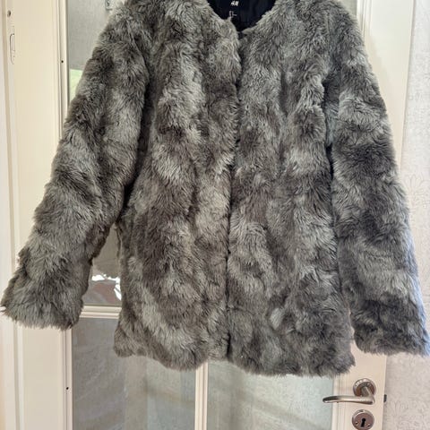 H&M Andre jakker i størrelse 44 for dame. Jakken er grønn og laget av fuskepelsmateriale. Den har glidelåslukking og detaljer i svart. Jakken har en stor, lys fuskepelskrage og er designet for kaldt vær.