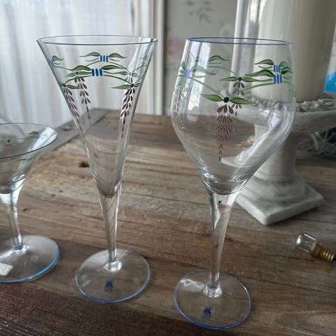 Flyttesalg: Rødvin, hvitvin og likør glass. Pluss en liten skål. Bedre bilder kommer.