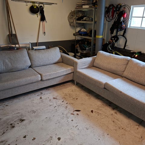 To år gammel, pent brukt. Vaskbart trekk. Beige.