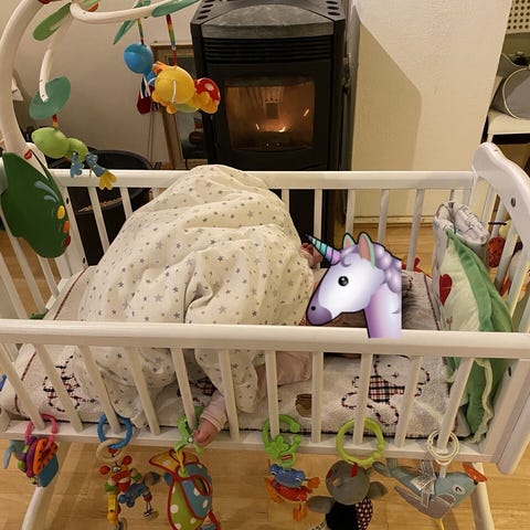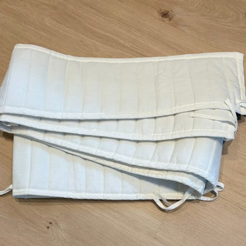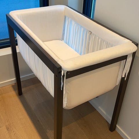 Stokke vugge selges. Pent brukt, men er noe nuppete. Mulig dette kan fjernes med nuppefjerner. Sømmen i stoffet har gått litt opp ett sted, se bilder.