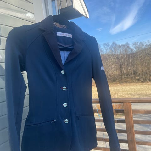 Animo Donna jakke i størrelse 44 (italiensk). Kan passe str 38-42. Den er stretchy i stoffet. Den er brukt kun til stevner.
