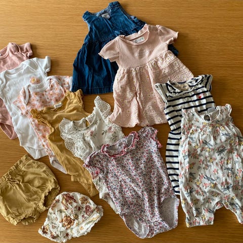 6 plagg fra Newbie (str 62, unntatt bukse og kortermet body i hvitt er str 68)