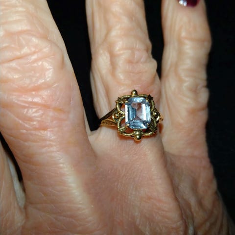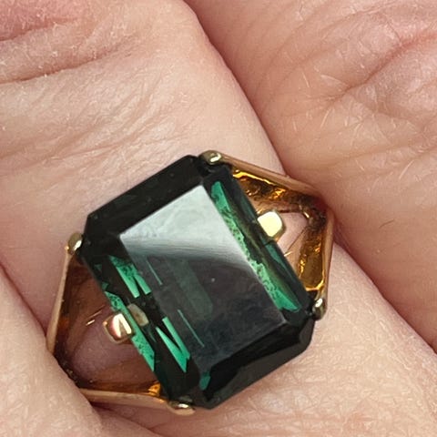 Selger en vakker vintage ring i 585 gull med ekte naturstein (turmalin).