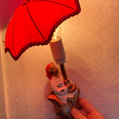 Vakker vintage bordlampe fra franske Maison le Dauphin, trolig fra 1970-tallet. Flotte og tidløse farger i sort, brun og messing. E27 sokkel, bryter og vanlig stikk.