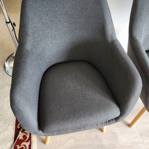 Bordet og stolene er malt med svart maling og kan trenge ett nytt strøk. Ellers i ok stand