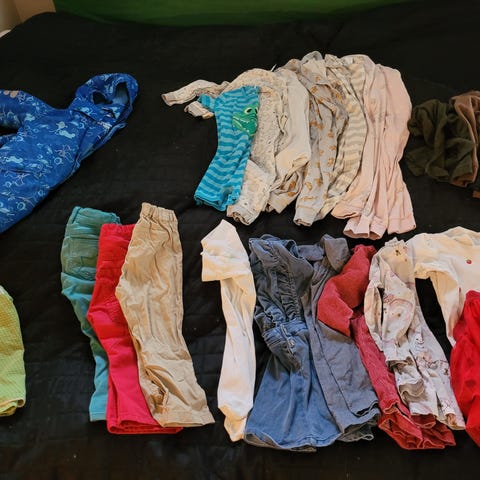 Stor klespakke til tvillingjenter i størrelse 86-92. Se detaljer på bilder. Totalt 18 plagg.