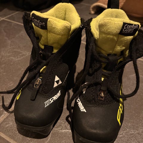 Merk at det har vært skrevet navn på skoen som det er strøket over med tusj. Se bilder.