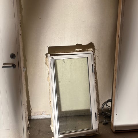 Nytt vindu med mål rute høyde ca 96 cm, bredde ca 86 cm, mål hele vinduet er høyde ca 127 og bredde ca 112 cm.