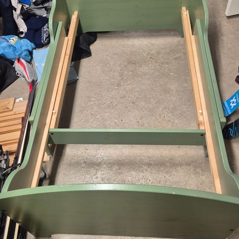 Litt slitt i kantene (kan godt få et strøk maling), men fungerer fint :)