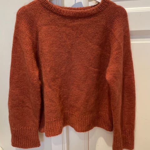 Filippa K Genser i størrelse M, fargen rosa, laget av mohairull. Genseren er designet for kvinner og har en myk og varm tekstur, dekorativ gulltråd og 2/3 ermer.