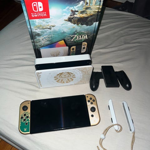 Selger denne utrolig pene Nintendo Switch Oled Zelda tears of the kingdom edition.