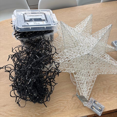 Pent og nett juletre i plast 140 cm , dette er uten lys .