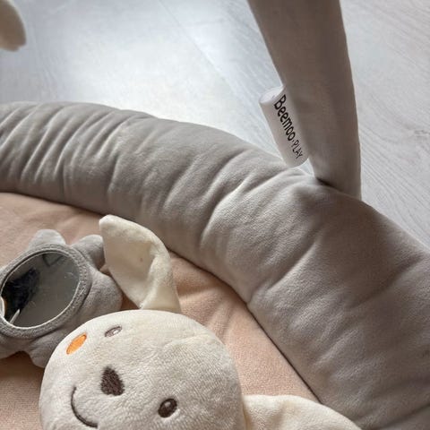 Selger en pent brukt babygym fra Beemoo. Vasket i maskin, så derfor litt ruglete i kantene og borrelåsen er noe slitt. Ellers i god stand😊 Må hentes.