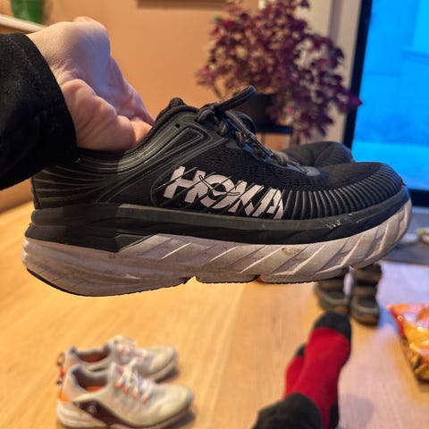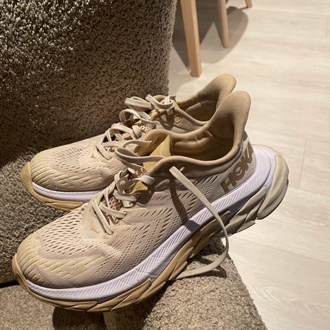 Hoka Sneakers joggesko i størrelse 38, hvit farge. Skoene er brukt til trening og hverdag. Godt brukt.