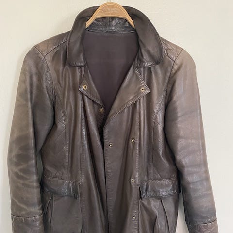Norsk lang lærjakke. Str 42. Avtagbar hette