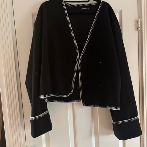 Pent brukt , med hette, glidelås på sidene. Veldig behagelig og varm.