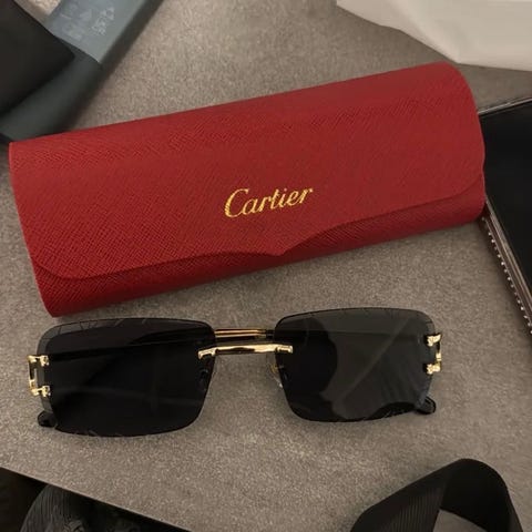 Solbriller for alle. Brillene er formet som en and med ramme i gullfarge. Designet for både menn og kvinner.