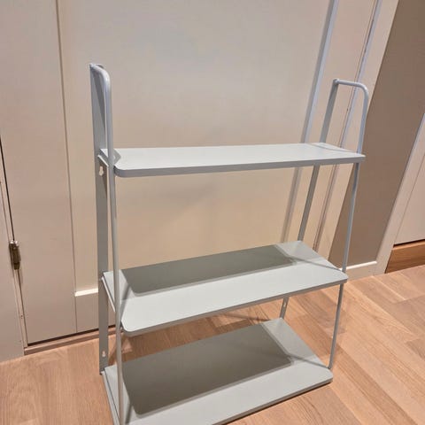 Kjempefin hylle fra H&M i grå farge. Aldri brukt, passet dessverre ikke inn som tiltenkt. Hyllen har fått en liten ripe i frakt, var slik når jeg mottok den. Sikkert enkelt å male over dersom det har betydning.