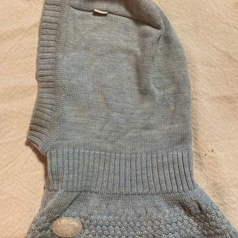 Lillelam ull sett av heldress og lue (size 40-42) i størrelse 56 for unisex barn. Dressen er laget av ull og har en blå farge. Den har knyting foran for enkel påkledning.
