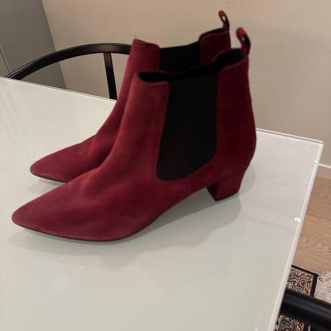 Ubrukte Laura Bellariva skoletter, størrelse 40 1/2, i svart skinn med elastiske sider. Skoletten har blokkhæl som gir stabilitet og komfort ved bruk.