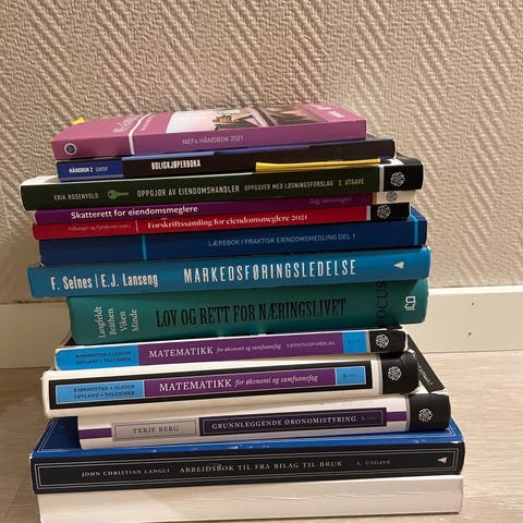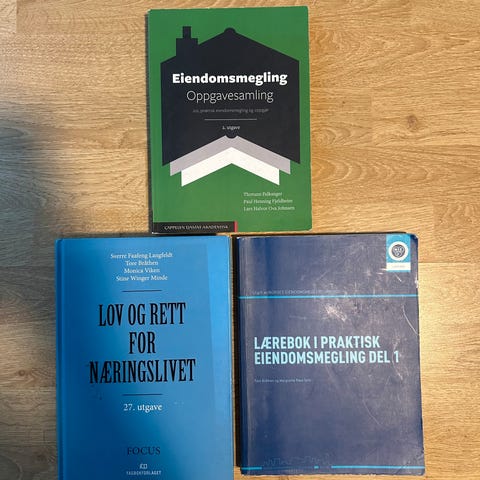 Pensumbøker til Eiendomsmegling jus og økonomi 1. - 3. året.